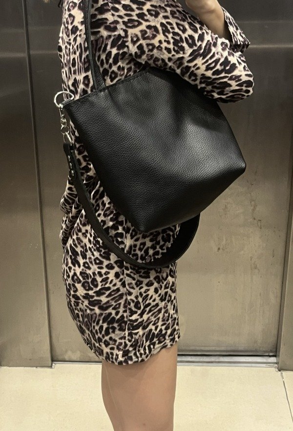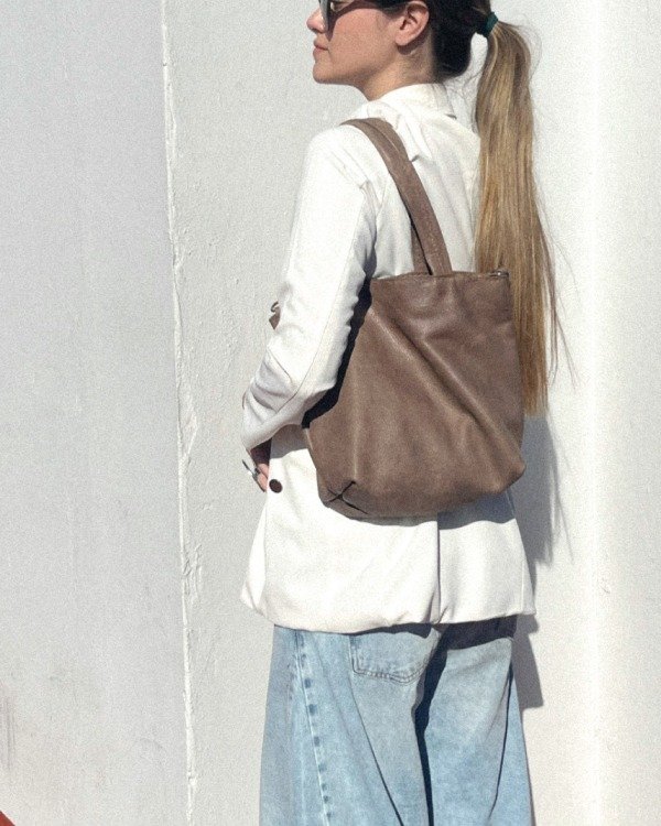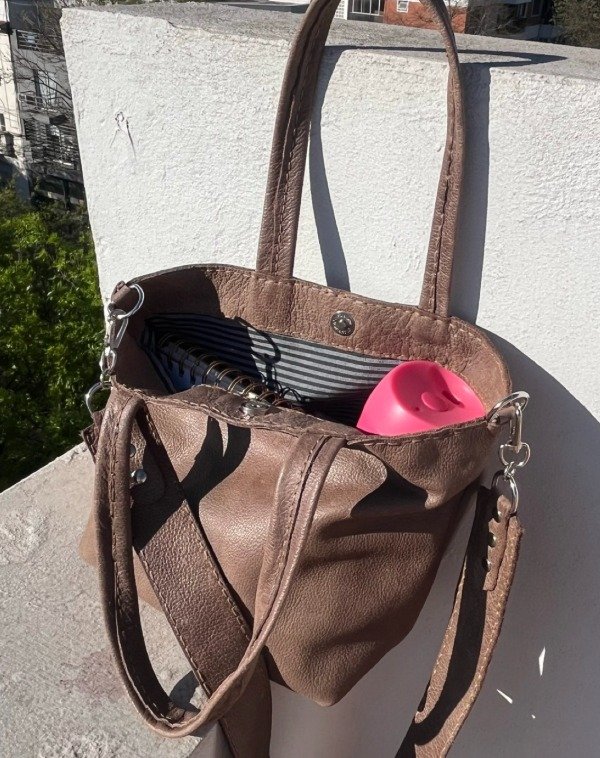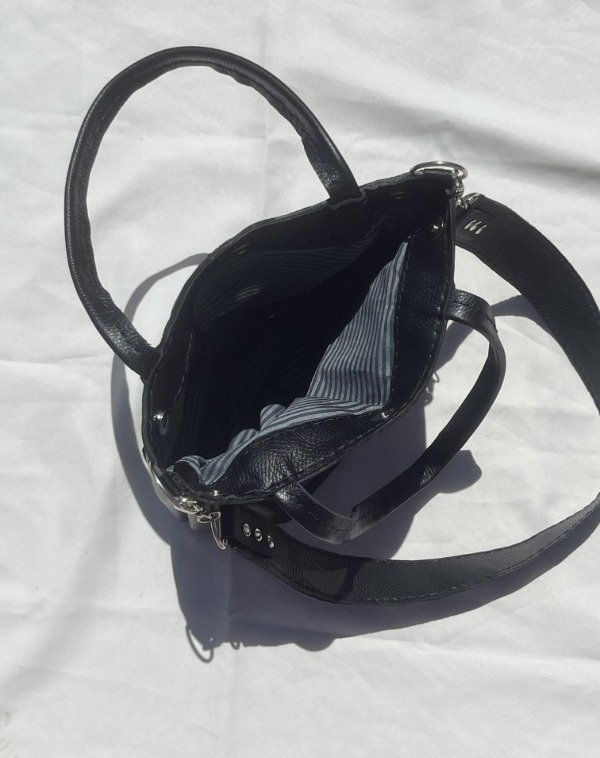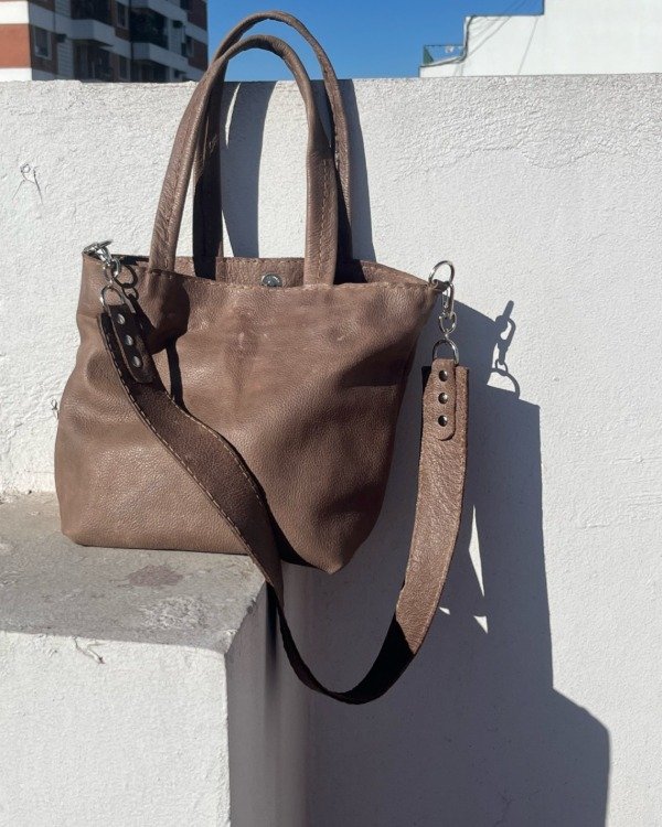 Mini tote bag de cuero argentino. Forrada por dentro con tela gross; confección 100&% artesanal.