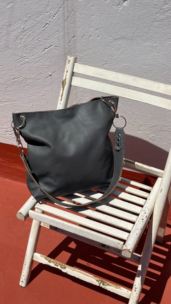 TOTE BAG DE CUERO ARGENTINO AGUA ARDIENTE GRIS CEMENTO FORRADA POR DENTRO