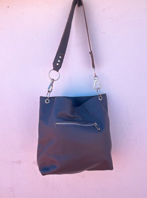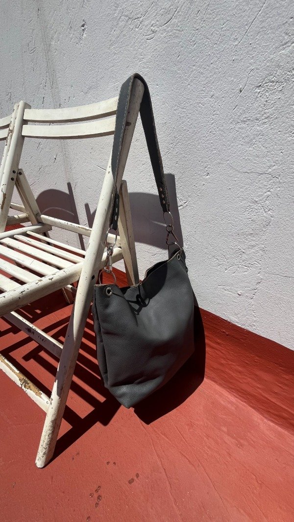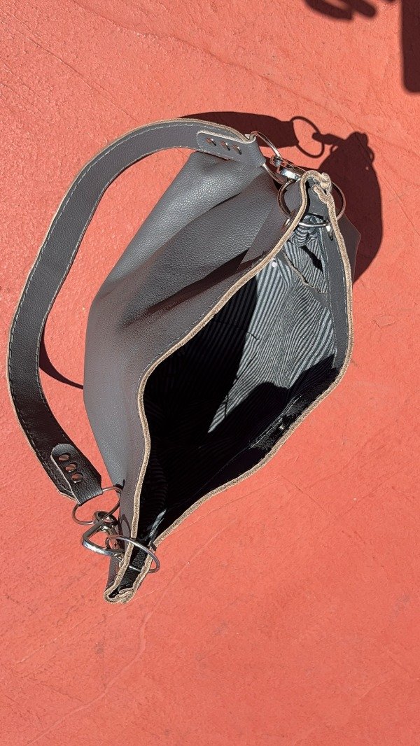 Tote bag de cuero argentino legitimo, forrada con tela gross; confección a mano. Piezas unicas e irrepetibles.